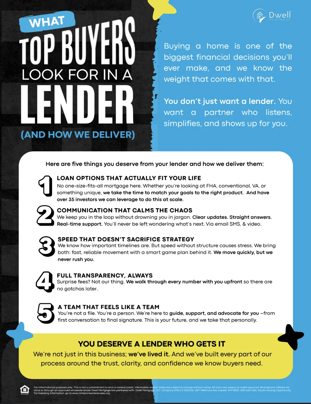 Dwell Mortgage, LLC. Company NMLS # 2426506. Headquarters: 2817 Wetmore Ave, Everett, WA 98201. 800-605-1626.